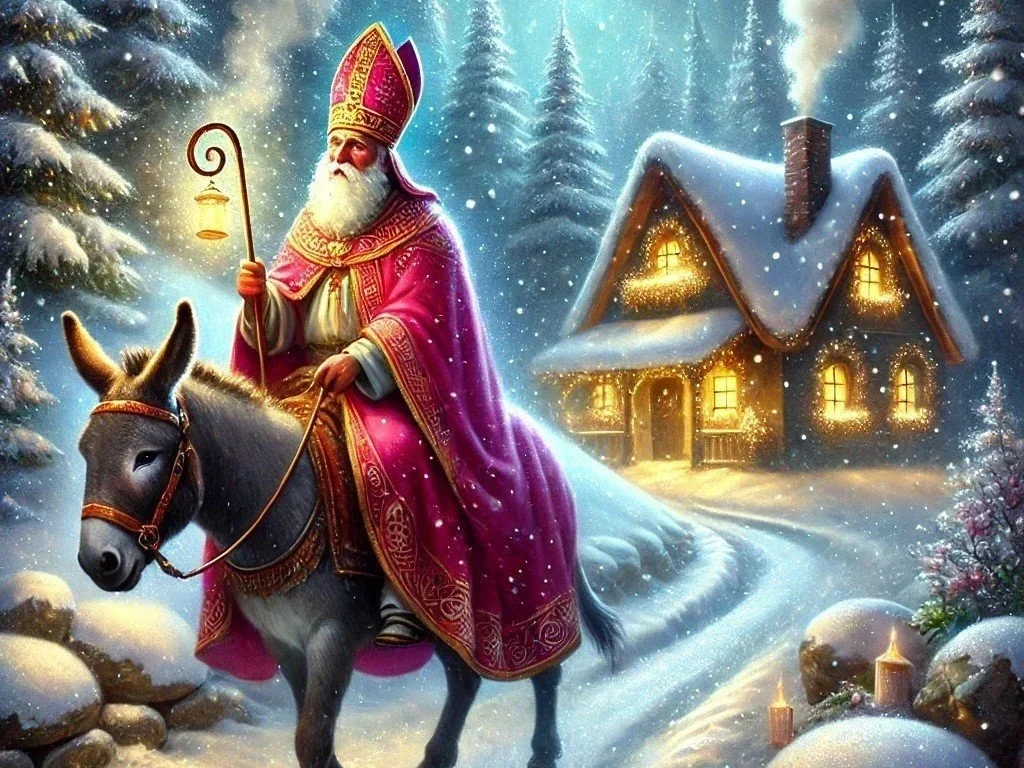 Je vous en parlais l’année dernière, Saint Nicolas, N-1 du Père Noël, vient récupérer la liste des enfants sages. Il opère de nuit, monté sur son âne nyctalope et laisse une douceur en chocolat.